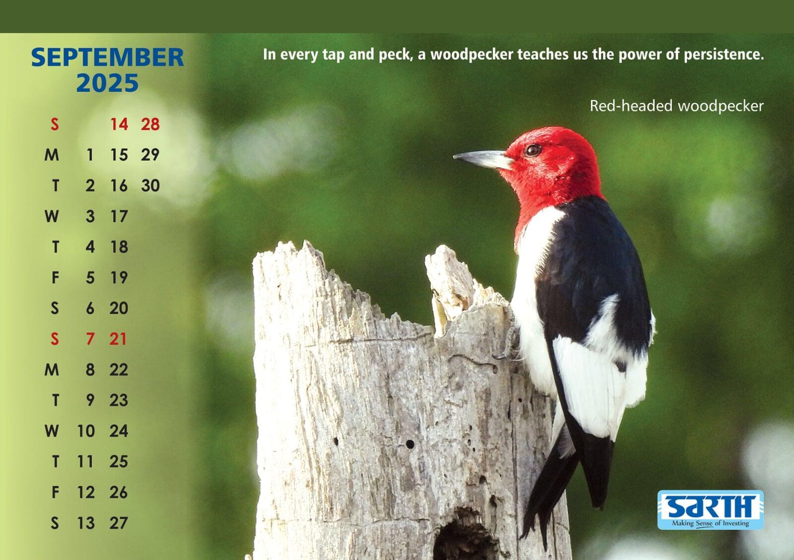 Calendar's theme is nature. Every page displays a beautiful bird. I am a enthusiast photographer and enjoy photographing these beautiful bird in and outside India. Name of the bird shown here is Cardinal (from the USA.)